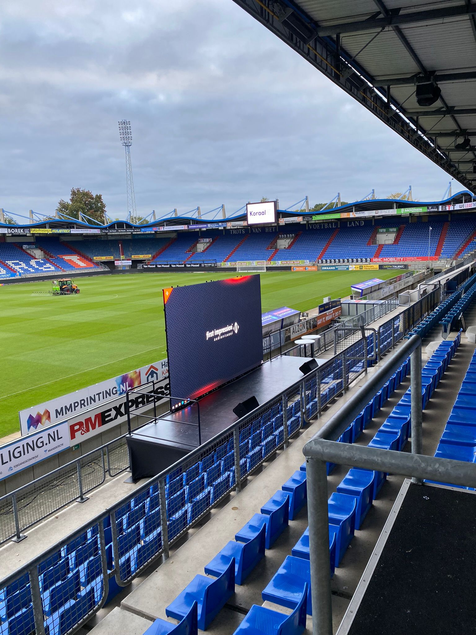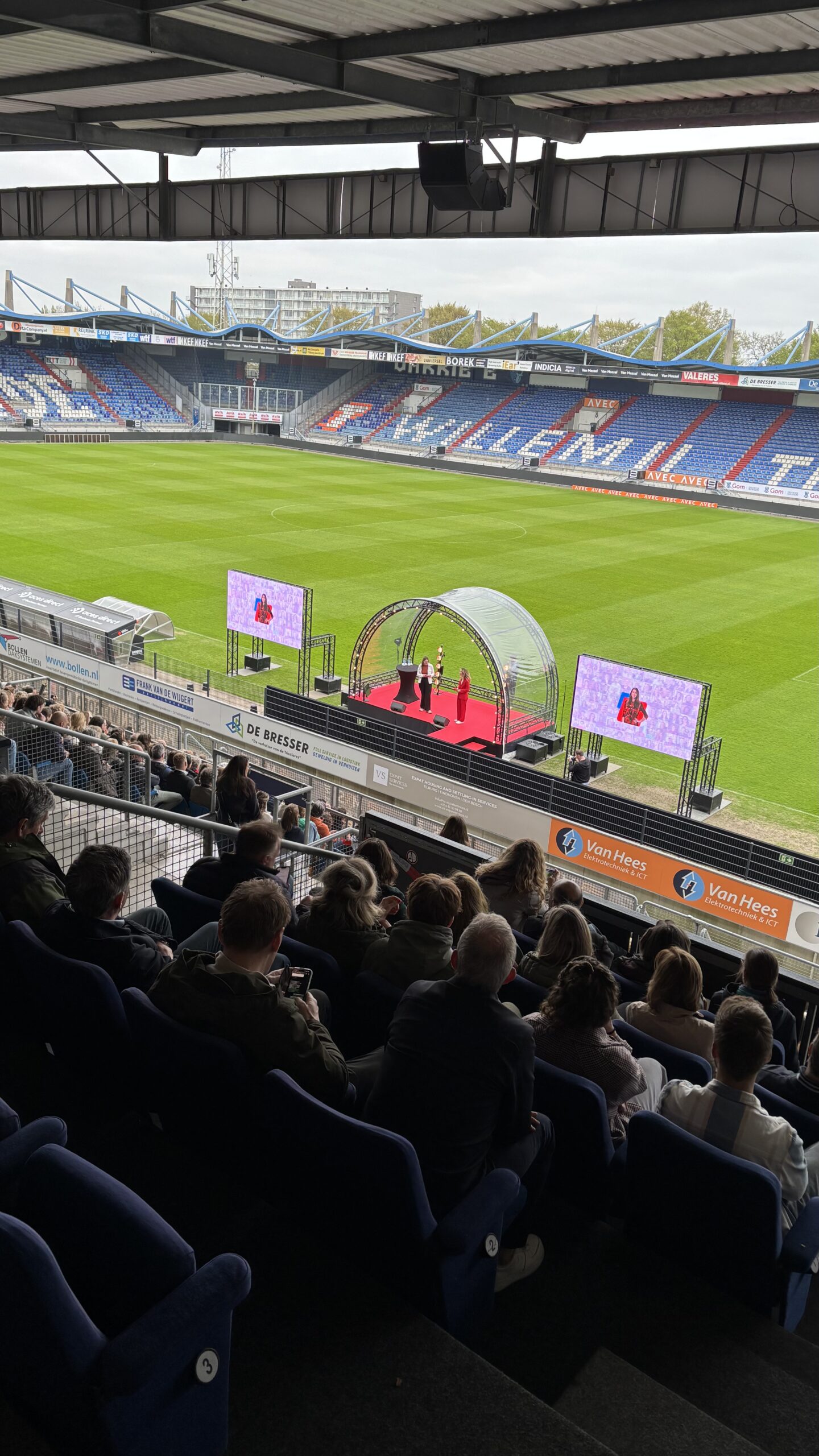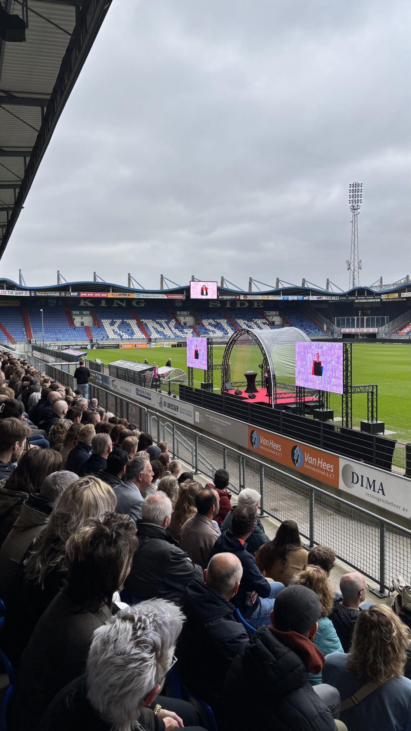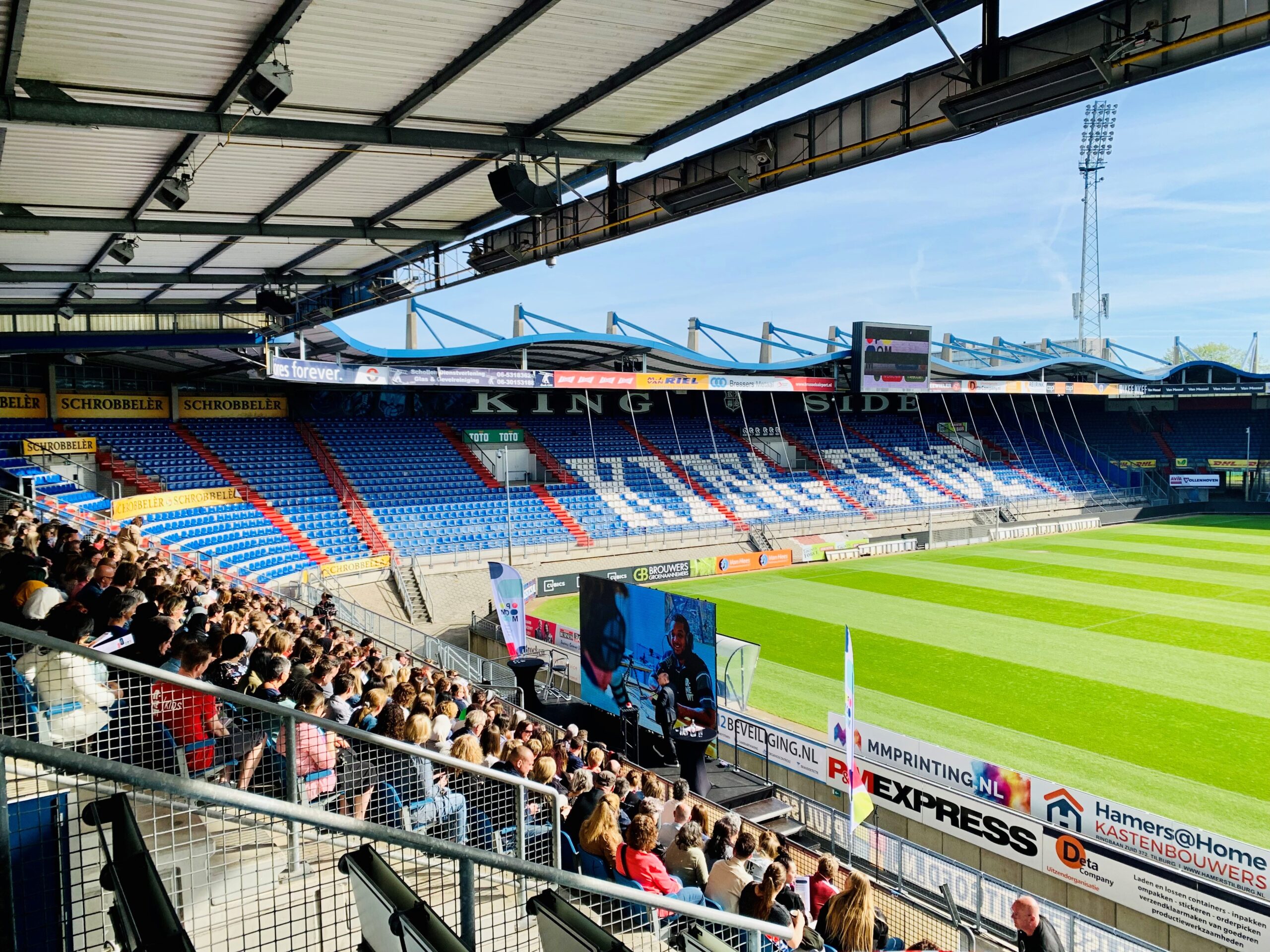 Een unieke ervaring midden in het Koning Willem II stadion. Gebruik de tribunes als indrukwekkend decor voor jouw presentatie, diploma-uitreiking of plenaire start. Met professioneel geluid, LED-schermen en decor biedt deze setting de ultieme wowfactor voor grote evenementen.